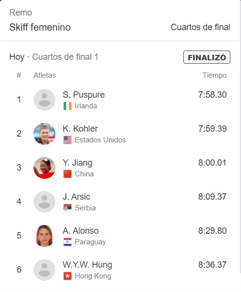 El tiempo de Alonso fue de 8:29″80′, dejando en alto la bandera Paraguaya en los JuegosOlimpicos.