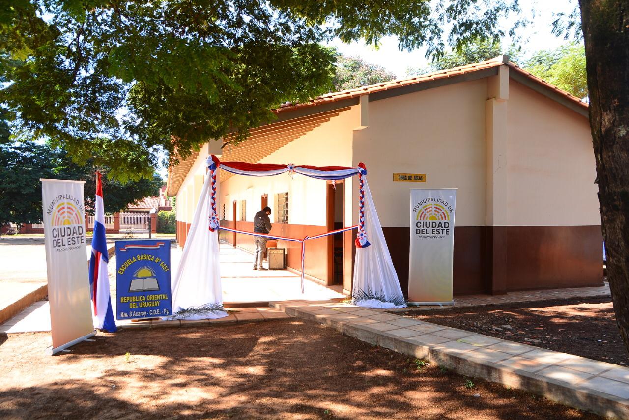 El recorrido de inauguraciones también incluyó la Escuela Básica N° 2975 Augusto Roa Bastos, del Km. 8 Acaray, donde culminaron las obras de reparación de 6 aulas, con una inversión de G. 336.290.305.
