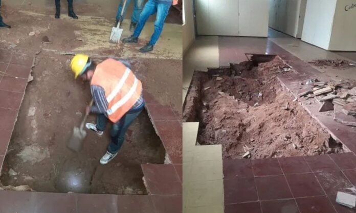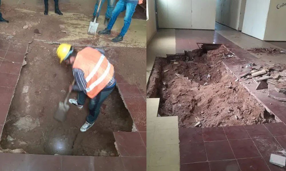 Este jueves se realizó un análisis más minucioso y descubrieron la presencia del túnel. La Ministra de Justicia informó que era una gran obra de meses y para que no ceda la tierra, estaba apuntalado con madera.
