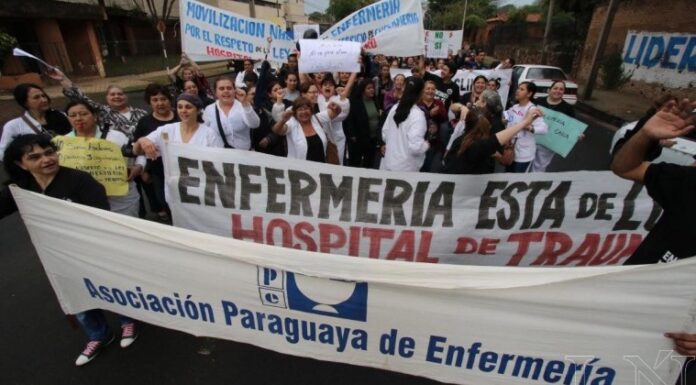 “Salimos a exigir lo que en cuanto a ley nos corresponde y que fuera aprobada en octubre del 2020. Mañana el punto de partida y encuentro será el Ministerio de Salud y aquellos que no puedan asistir, se manifestarán frente a sus respectivos hospitales”, dijo la Lic. Mirna Gallardo, presidenta de la Asociación Paraguaya de Enfermería (APE), en conversación con Enfoque 800 por La Unión, afirmando que el reclamo incluye la desprecarización laboral.