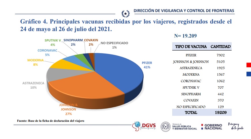 La Dirección de Vigilancia y Control de Fronteras reportó que en los últimos meses (del 24 de mayo al 26 de julio), más de 19.200 viajeros que ingresaron al país declararon estar inmunizados contra el COVID-19.