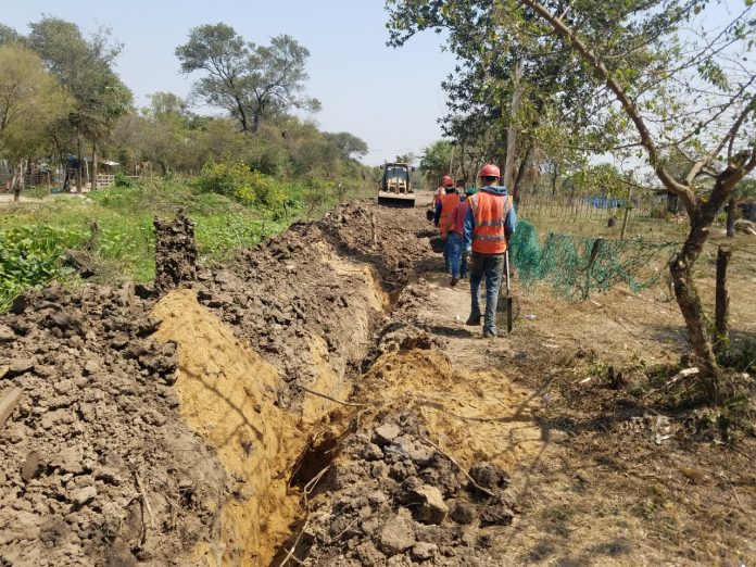 Hasta la fecha ya se realizó la instalación de 550 metros de tendido de tuberías de impulsión de agua cruda hasta el barrio Villa Jardín donde estará ubicada la Planta, que una vez que la misma sea puesta en funcionamiento, serán beneficiados 12.000 habitantes limpeños con un mejor servicio.
