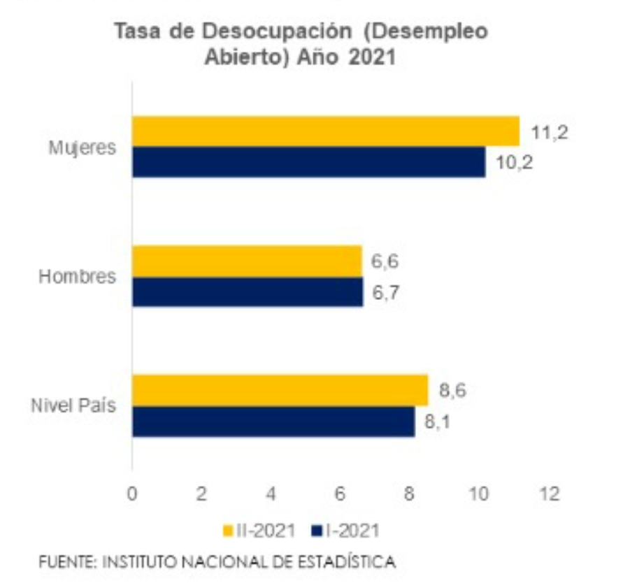 Por su parto, la tasa de desempleo de 8,6% señala un incremento de 0,5 p.p. trimestral. La tasa no solo es mayor a la del trimestre pasado, sino es la más alta en años, siendo superior inclusive a las cifras registradas en las condiciones del pasado año dada la cuarentena. En el aumento de dicha tasa, la mayor incidencia la tuvo el desempleo femenino, que se incrementó en 1 p-p-, lo cual refleja la necesidad de trabajar en políticas de empleo más inclusivas para el sector, que está teniendo dificultades en insertarse al mercado laboral, pese a la mejora en la situación sanitaria.