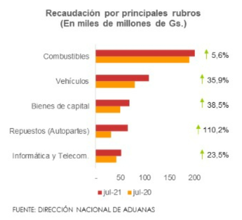 Factores como el tipo de cambio y la suba del precio del petróleo contribuyeron a que el costo de algunos bienes se incremente, lo cual habría tenido incidencia positiva en la recaudación aduanera de julio, que totalizó Gs. 983,2 mil millones, creciendo 19,4% en relación al mismo mes del año pasado.De esta manera, se registró la mejor recaudación histórica del mes de julio.