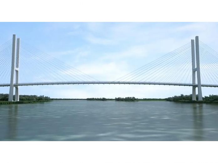 En el documento, se indica la trazabilidad de la ubicación sugerida, así como la definición geométrica que incluye el puente atirantado de 630 metros y laterales de 305 metros en ambos lados.