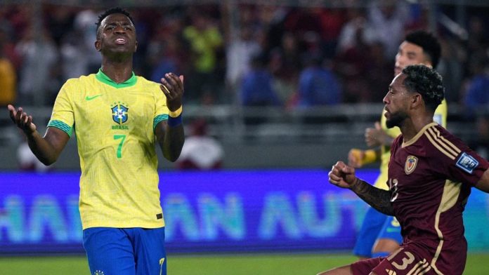 En un duelo tenso de la decimoprimera jornada de las eliminatorias sudamericanas rumbo al Mundial 2026, Brasil y Venezuela empataron 1-1 en el Estadio Monumental de Maturín. Aunque el equipo de la «Canarinha» dominó gran parte del primer tiempo, la actuación de Vinícius Júnior dejó mucho que desear y fue clave en el resultado final. El delantero brasileño tuvo la oportunidad de llevar a su equipo al triunfo, pero su desempeño estuvo marcado por el error y la exageración en el campo.